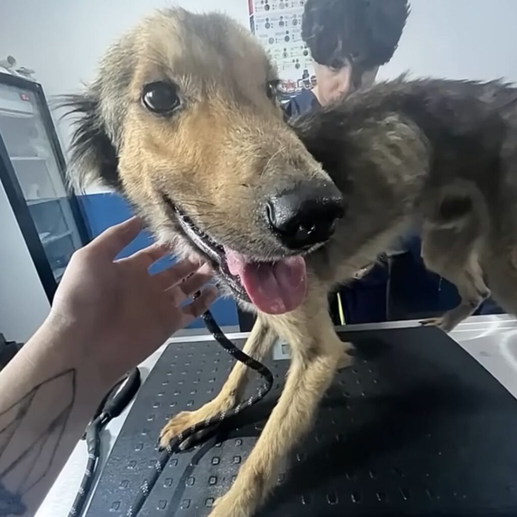 At the clinic, the staff moved fast. They weighed him, checked his eyes, his heart. The vet’s face was grim. Zeus had starved for weeks, his body crawling with ticks and fleas.