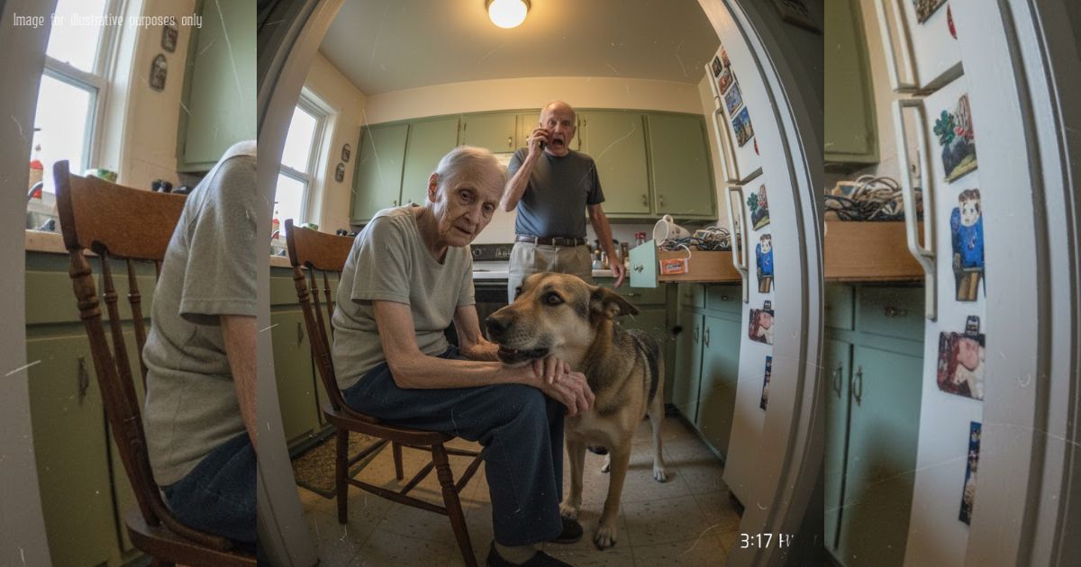 Scout rockets across the kitchen like a thrown spear, nails skittering on the old wood floor. He’s already barking in a clipped three-beat pattern—yip-yip-yip—when Evelyn’s voice thins out mid-sentence. The tea mug trembles, clinks. She sways, then collapses into the chair as if a puppet string snapped. Her skin goes the color of paper.