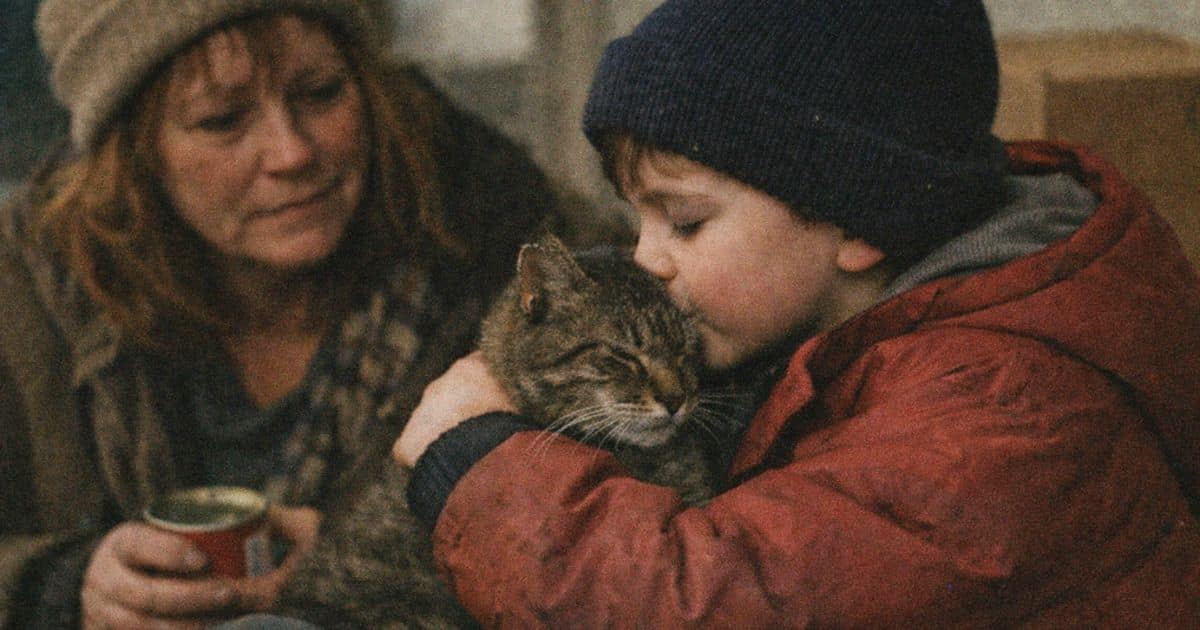 Because there it was, right in front of me. A kid with nothing extra in his pocket. No snack. No blanket. No grand gesture. Just a few soft words and a kiss on the head for a creature that probably spent most of its life being ignored.