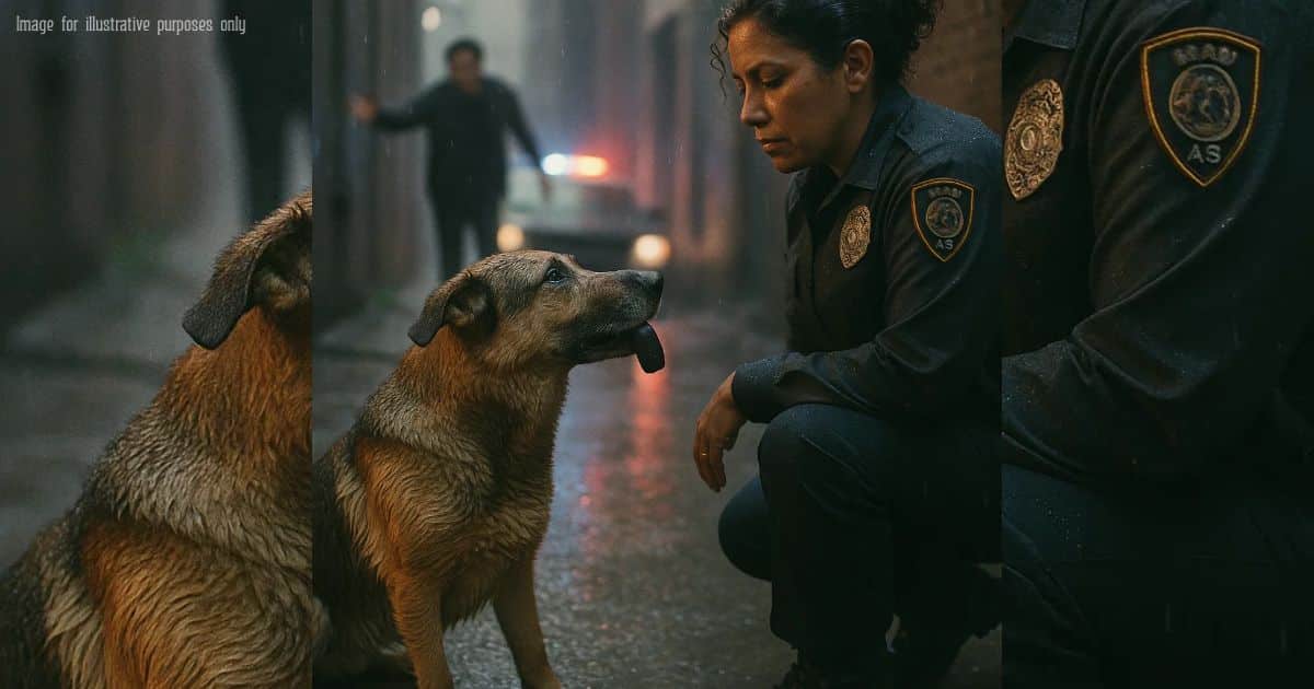 The officer’s voice didn’t rise. It didn’t need to. “Sir, hands where I can see them.” The rain stitched her words into the alley until they felt like part of the weather. Blue sat beside her boot like he had sat beside my mother’s chair during her long afternoons, polite and alert, waiting for permission to be kind.