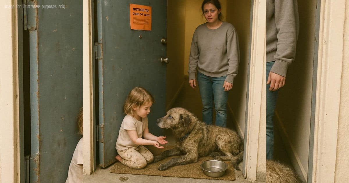 It had been him every afternoon—showing up at our cracked front steps of Unit 2B right before I left for my night shift, planting himself on the mat like he’d been summoned. I’d hiss at him—go, shoo, scram—because our lease is one of those thick stapled things that says NO PETS in caps you hear in your sleep, because our building manager patrols the hall like a prison guard, because I could already hear the fight I’d have with God if this dog gave my child ringworm.