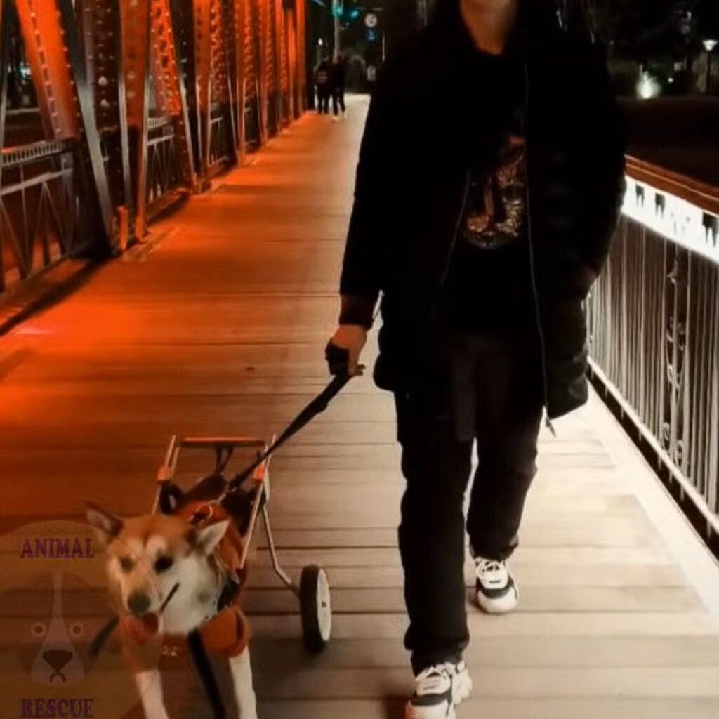 Years later, a wheelchair arrived. Crafted simple but sturdy. The dog took to it fast. Learned to wheel himself along the paths. Now they walked together, side by side. No more carrying. Just companionship on even ground.