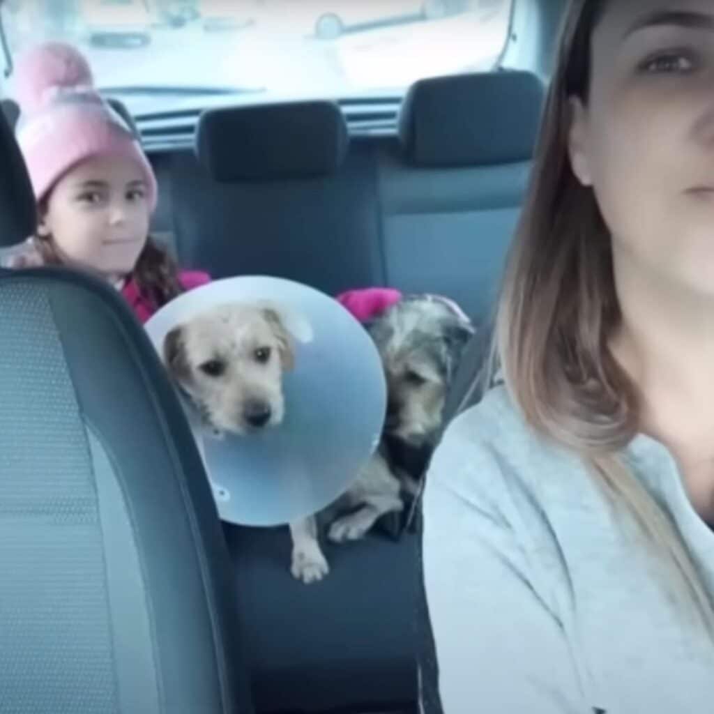 Weeks later, I got a photo. Daisy, her leg stronger, lay in the grass, her pups tumbling around her. Lily sat beside them, her eyes bright, her tail a blur. The girl was laughing, her arms around both dogs. They were home. They were together.